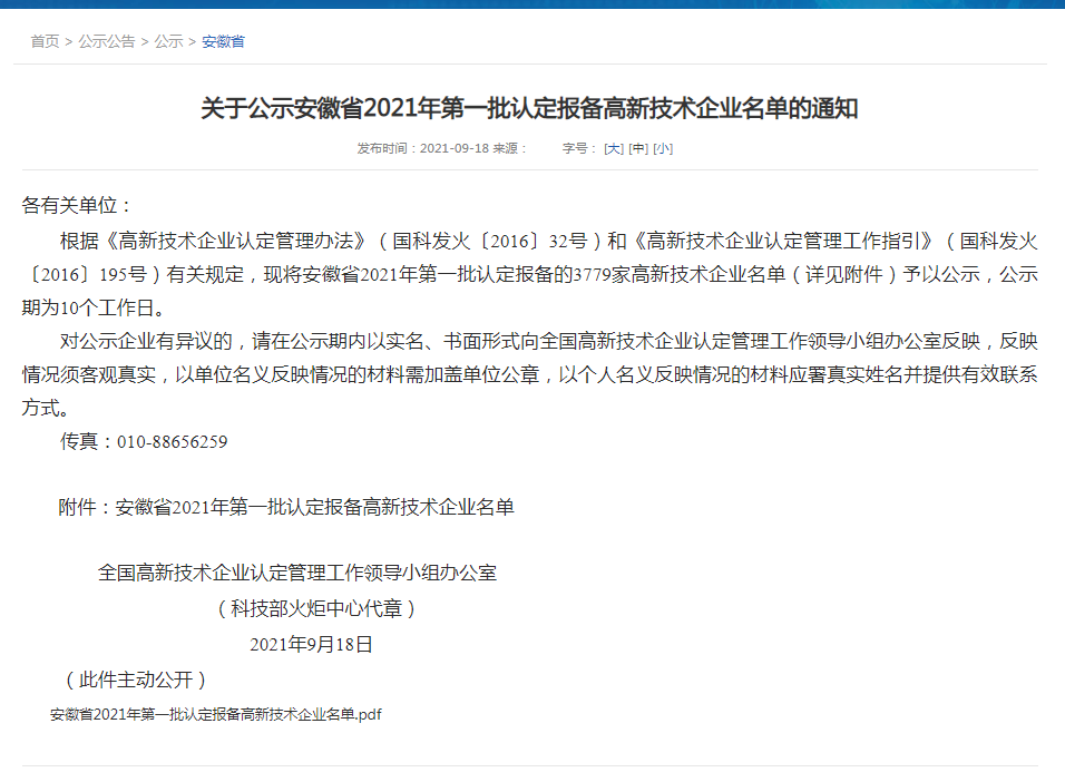根據國家《高新技術企業(yè)認定管理辦法》和《高新技術企業(yè)認定管理工作指引》的相關規(guī)定,安徽譽特雙節(jié)能技術有限公司于2021年9月18日再次被認定為國家級高新技術企業(yè)。