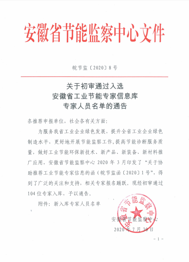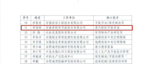 熱烈祝賀我公司總經(jīng)理袁克、副總經(jīng)理李清峰等同志成功入選安徽省工業(yè)節(jié)能專家信息庫(kù)