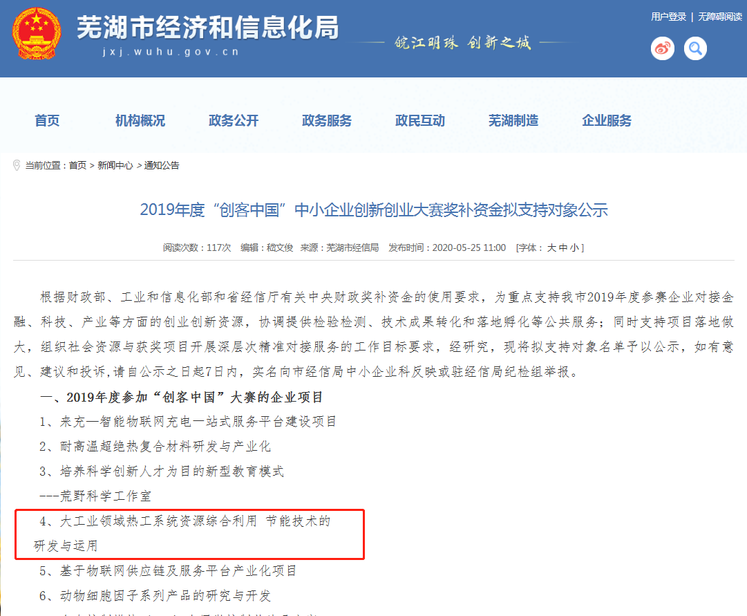 其中我公司創(chuàng)新創(chuàng)業(yè)項目——大工業(yè)領(lǐng)域熱工系統(tǒng)資源綜合利用節(jié)能技術(shù)的研發(fā)與運用,獲得蕪湖市第四名,并取得獎補資金支持,在此表示熱烈祝賀。下一步,公司仍將整合資源,奮發(fā)作為,再上新臺階,為國家節(jié)能環(huán)保事業(yè)貢獻力量!