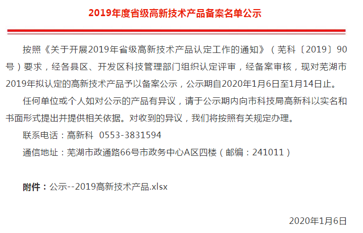 喜訊---熱烈祝賀我公司產(chǎn)品入選2019年度省級(jí)高新技術(shù)產(chǎn)品名單