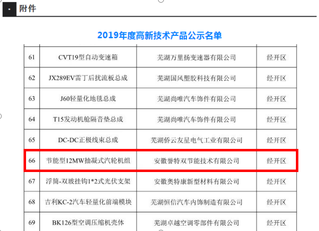 2020年1月6日,安徽省高新技術(shù)產(chǎn)品認(rèn)定名單正式公布。我公司產(chǎn)品節(jié)能型12MW抽凝式汽輪機(jī)組喜獲認(rèn)定,這次獲得高新技術(shù)產(chǎn)品認(rèn)定再一次驗(yàn)證了安徽譽(yù)特雙的卓越品質(zhì),同時(shí)也是對(duì)我司產(chǎn)品權(quán)威的肯定!
