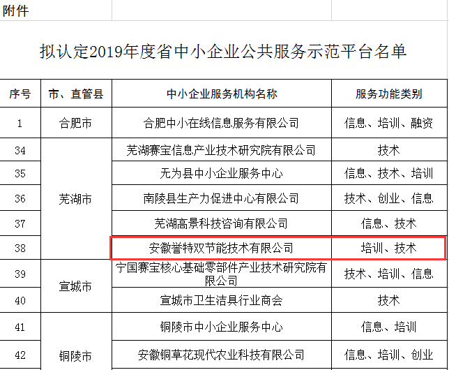 12月30日,我公司經(jīng)安徽省經(jīng)信廳認(rèn)定為2019年度省中小企業(yè)公共服務(wù)示范平臺,本次全省共計評選出54家中小企業(yè)公共服務(wù)示范平臺,其中蕪湖5家。