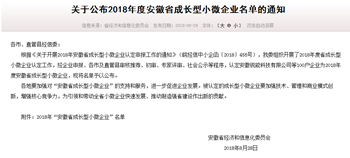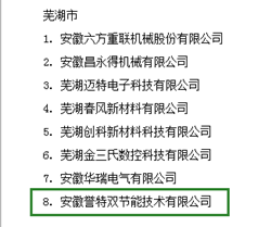 2018年8月29日,安徽省經(jīng)信委通過官網(wǎng)發(fā)布——2018年度安徽省成長(zhǎng)型小微企業(yè)認(rèn)定名單,我公司安徽譽(yù)特雙節(jié)能技術(shù)有限公司喜獲認(rèn)定,為蕪湖市僅有的八家上榜企業(yè)之一,也是蕪湖國(guó)家級(jí)經(jīng)濟(jì)技術(shù)開發(fā)區(qū)和蕪湖高新技術(shù)創(chuàng)業(yè)園區(qū)唯一的入選企業(yè),含金量頗高。