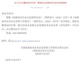2018年7月24日,國家科技部全國高新技術(shù)企業(yè)認定管理工作領(lǐng)導小組辦公室,通過科技部火炬中心官網(wǎng)發(fā)布——安徽省2018年第一批國家級高新技術(shù)企業(yè)認定名單的公示通知,我公司安徽譽特雙節(jié)能技術(shù)有限公司榜上有名,目前已順利通過公示,正式予以認定,公司在此表示熱烈祝賀!