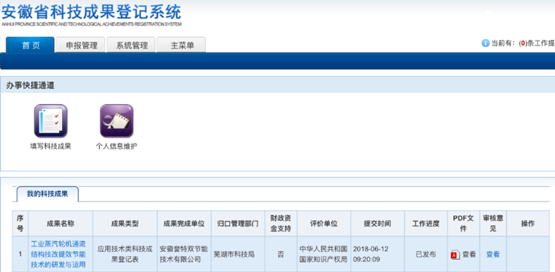 近日,我公司安徽譽特雙節(jié)能技術有限公司專利技術——工業(yè)蒸汽輪機通流結構技改提效節(jié)能技術的研發(fā)與應用,經公司組織申報,市科技局審核、專家評委會審、安徽省科技廳復核批準,成果類別:應用技術類科技成果,現(xiàn)予以發(fā)布。