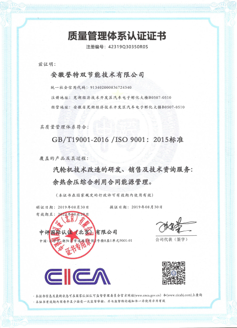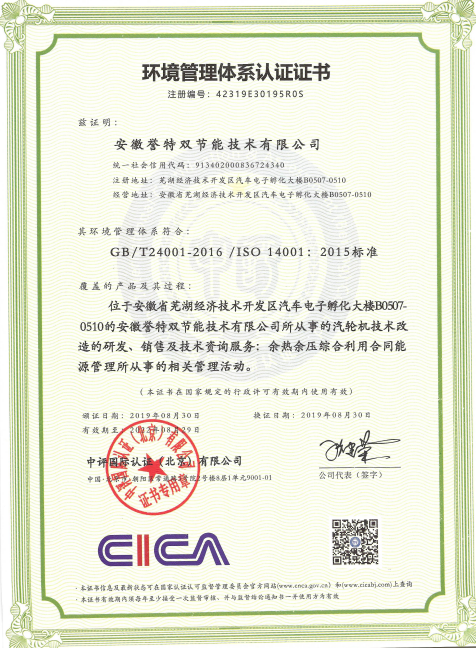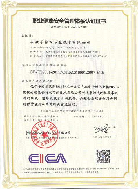 8月31日,公司質(zhì)量、環(huán)境、職業(yè)健康安全管理體系順利通過中評國際認證(北京)有限公司的現(xiàn)場審核,再次認證了質(zhì)量管理體系,以及新認證了環(huán)境、職業(yè)健康安全管理體系,并榮獲三體系認證證書。