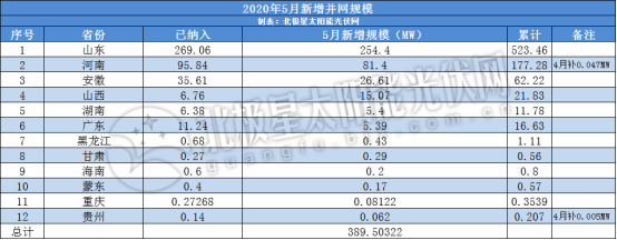 戶用光伏網(wǎng)訊:截至目前,共有山東、河南、安徽、山西等12個(gè)省份發(fā)布5月新增戶用光伏項(xiàng)目名單,總裝機(jī)規(guī)模389.50MW。其中,穩(wěn)居榜首的依然是大省山東,新增規(guī)模254.4MW,河南81.4MW、安徽26.61MW緊跟其后。