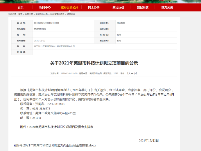 雙方首次合作申報2021年蕪湖市科技計劃擬立項項目——《雙碳”目標下傳統(tǒng)制造業(yè)節(jié)能減排路徑研究-創(chuàng)新環(huán)境研究》已在蕪湖市科技局網站公示。