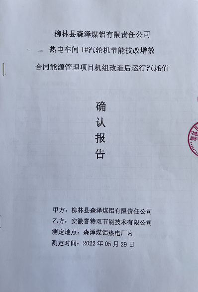 我公司以合同能源管理模式,全額投資實施的山西森澤煤鋁集團12MW背壓1#機組節(jié)能技改提效合同能源管理項目,自2022年5月19日開機沖轉成功并網以來,機組各項參數指標均正常、穩(wěn)定。項目于5月29日順利通過工程驗收,實測同等工況條件下,節(jié)能提效比例達34.1%,遠超合同約定的30.7%考核指標。