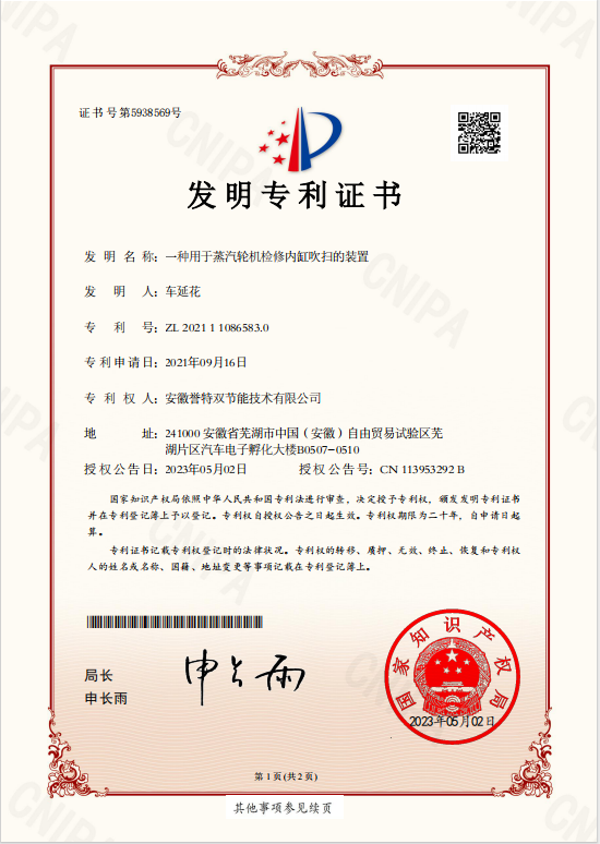 近日,我公司申請(qǐng)的四項(xiàng)發(fā)明專利——“一種采用蒸汽輪機(jī)的循環(huán)發(fā)電裝置”、“一種使用蒸汽輪機(jī)的發(fā)電機(jī)”、“一種用于蒸汽輪機(jī)檢修內(nèi)缸吹掃的裝置”、“一種蒸汽輪機(jī)的安全散熱器”,經(jīng)過受理、一次審查和答辯、實(shí)質(zhì)性審查后,獲得國家知識(shí)產(chǎn)權(quán)局正式授權(quán)。