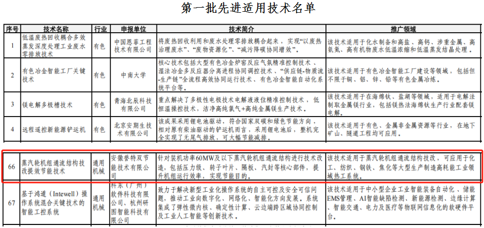近日,工業(yè)和信息化部在全國范圍內(nèi)開展先進(jìn)適用技術(shù)(第一批)遴選工作,經(jīng)自主申報(bào)、形式審查、專家評審等程序,最終擇優(yōu)評選出111項(xiàng)技術(shù)列入工信部第一批先進(jìn)適用技術(shù)目錄,我公司“蒸汽輪機(jī)組通流結(jié)構(gòu)技改提效節(jié)能技術(shù)”榮列榜單,在此表示熱烈祝賀。